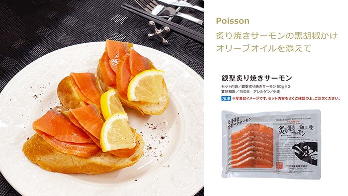 炙り焼きサーモンの黒胡椒かけ オリーブオイルを添えて