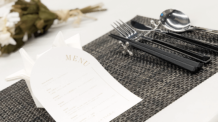 当日のお料理はすべてティアラがご紹介している引出物商品を使いお出ししていますとお伝えするとさらに驚かれたご様子。