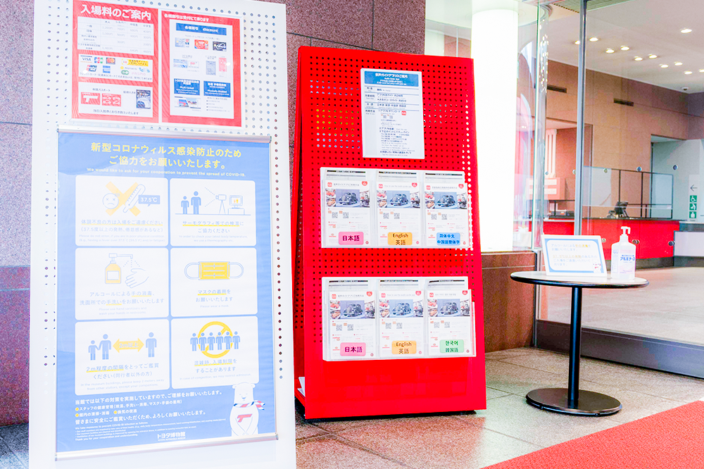 ① ゲスト招待人数は30名様程度までとさせていただきます。 (挙式プランは休館日のみの対応で貸切となります) ②アルコールによる手指の消毒、洗面所での手洗いをお願いします。 ③マスクの着用をお願いします(3歳以上の方)。 ※挙式時の新郎新婦は除きます。 ④人とは2m程度の間隔をとり、大声での会話はお控えください。 ⑤レストラン、カフェ以外でのご飲食はご遠慮ください。 ⑥ 展示車両には触れられないようお願いします。