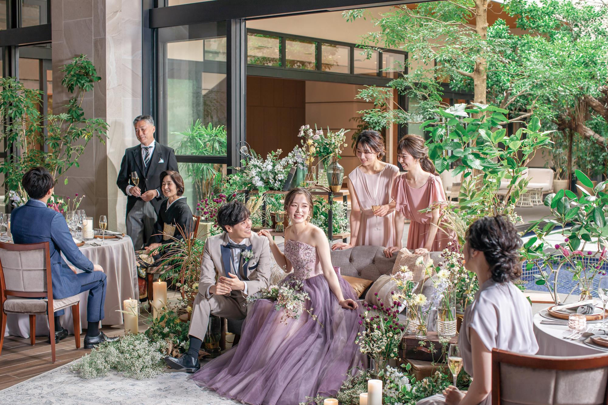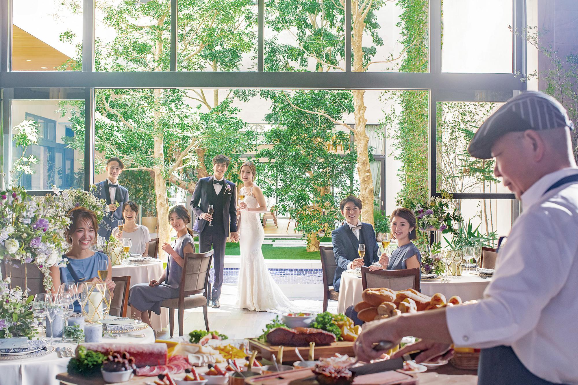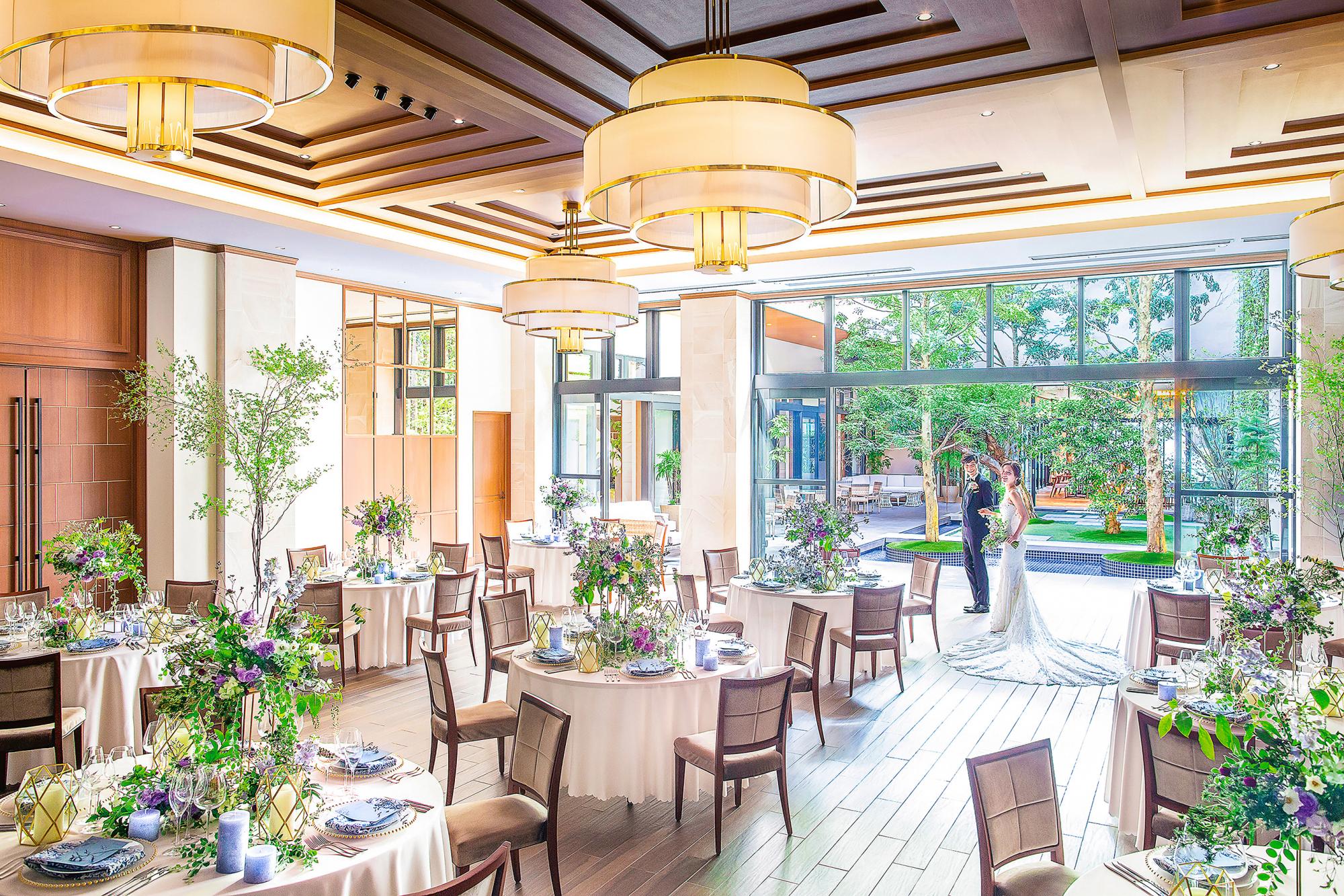 アクセス便利な都会の中にありながら、水と緑が豊かにあふれるガーデンを中心に、まるでリゾートのような心地よさに包まれる結婚式のための邸宅。1組で貸し切るプライベート空間をおふたりの自由にコーディネートし、完全オーダーメイドのお料理で、おふたりの大切なゲストの皆さまをおふたりが思うままにおもてなしいただけます。