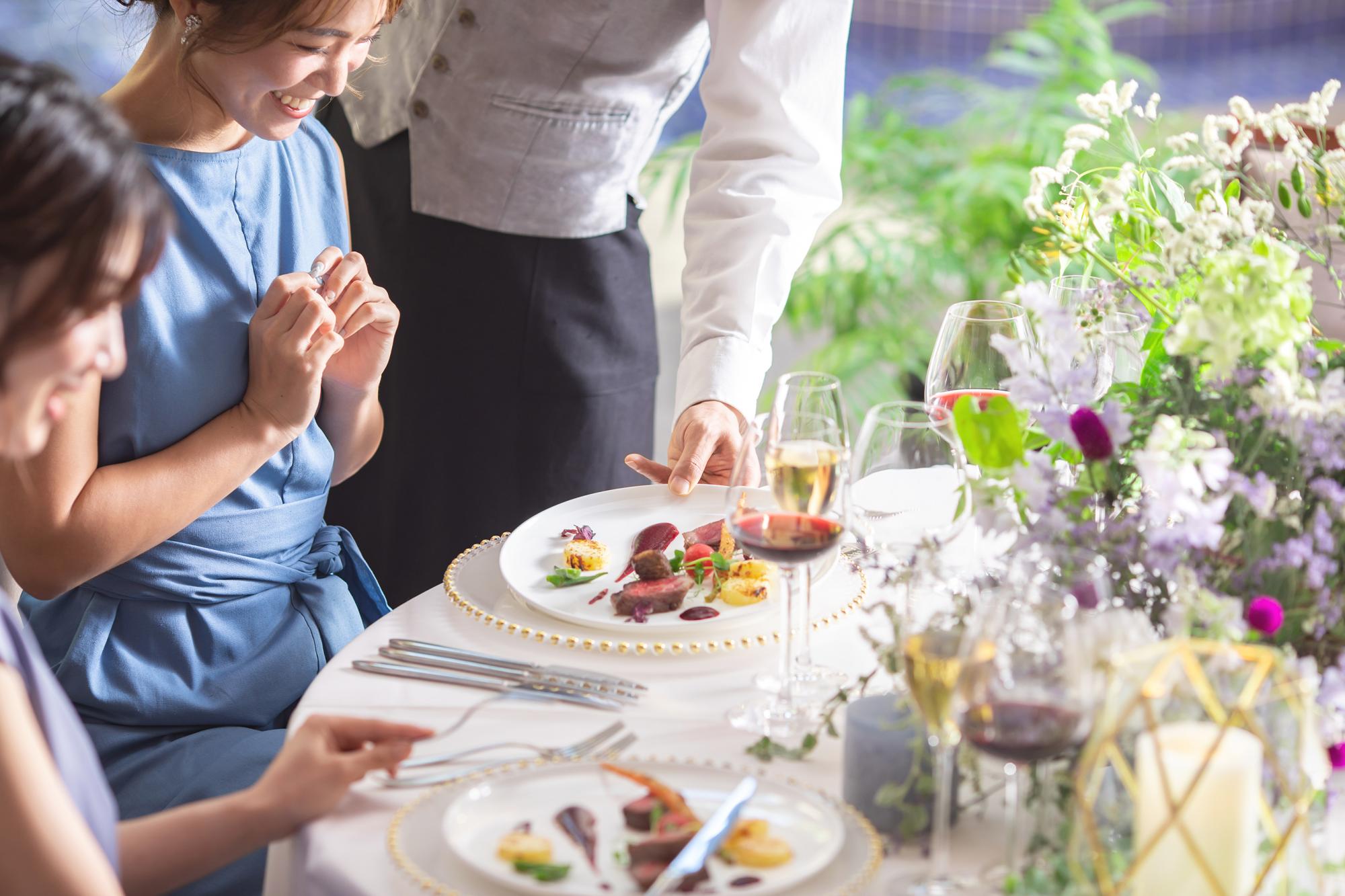 フレンチ対応、イタリアン対応、和食対応、食物アレルギー対応、完全オリジナルメニュー対応、オーダーケーキ対応、デザートビュッフェ可