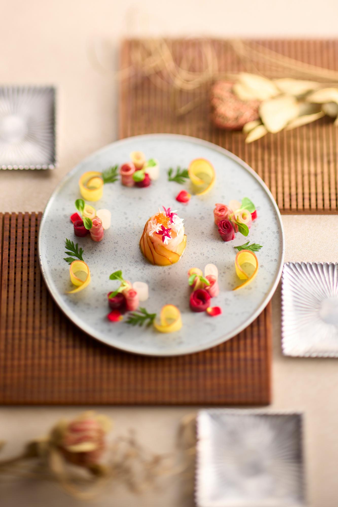 おふたりのこだわりや思い出などをじっくりお聞きして、 お料理で表現する完全フルオーダーメニュー。 素材にこだわった特別な婚礼料理をご堪能いただけます。