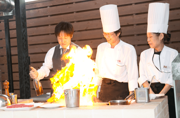 フレンチ対応、和洋折衷対応、食物アレルギー対応、完全オリジナルメニュー対応、オーダーケーキ対応、デザートビュッフェ可