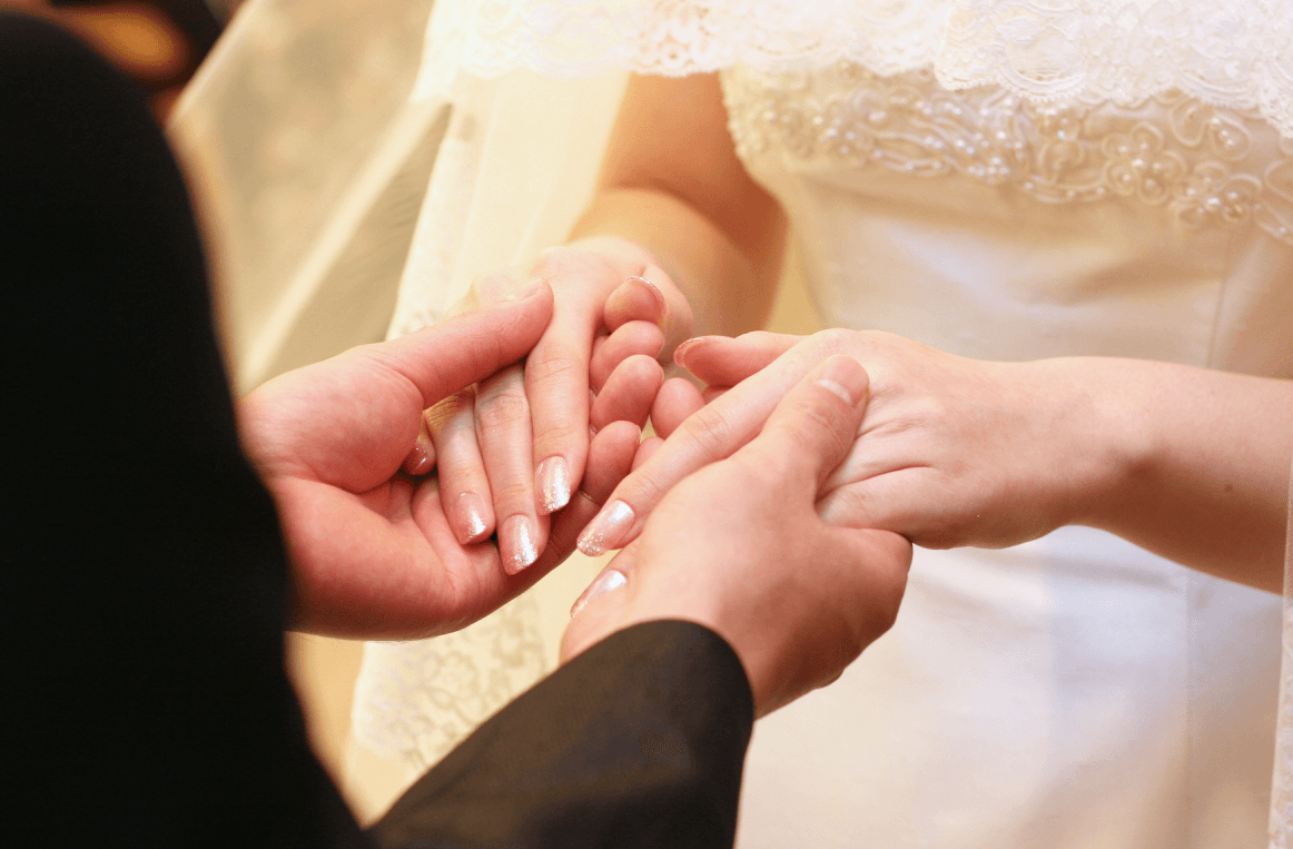 白に包まれたチャペルで牧師さんに誓いの言葉を述べる憧れの教会式。