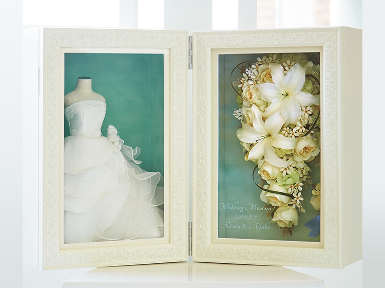 花嫁のミニチュアドレスとアフターブーケをセットで飾れるオリジナルスタンド。