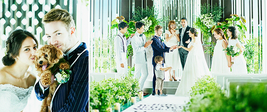 愛犬も参加の挙式は感動的でいながら和やかなムードに。大切な家族と共に最高の1日をお過ごしいただけます。