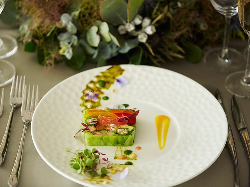 おふたりの感謝の形を、料理というおもてなしで表現いたします。 素材・鮮度・見た目までこだわりぬいた料理で最幸のひとときを。